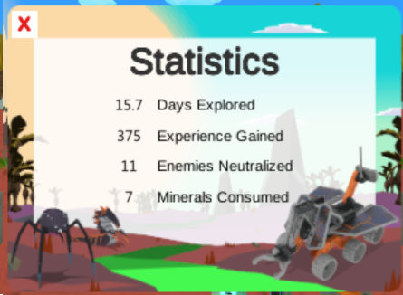 Take a screenshot showing your code and the final statistic window. Click the "View Statistics" button to get this information.